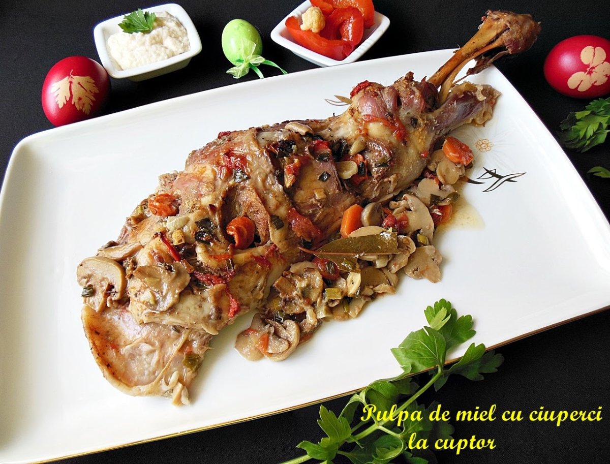 Dupa circa 2 ore, scoatem staniolul, marim temperatura si mai lasam pulpa cat sa prinda o crusta rumena. Eu am avut o carne frageda de asta nu a durat foarte multe ore pregatirea ei, asa ca incercati carnea inainte sa o lasati descoperita.