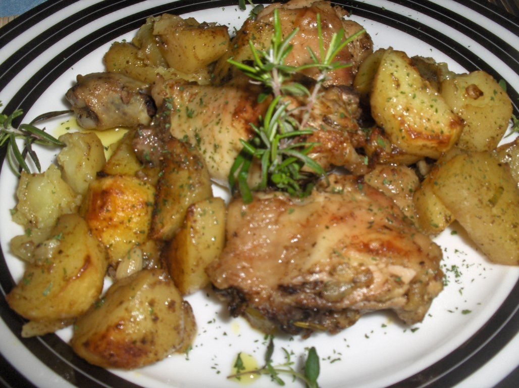 Cartofi se condimenteazã cu sare, piper si sofran si se dau la cuptor împreunã cu carnea.