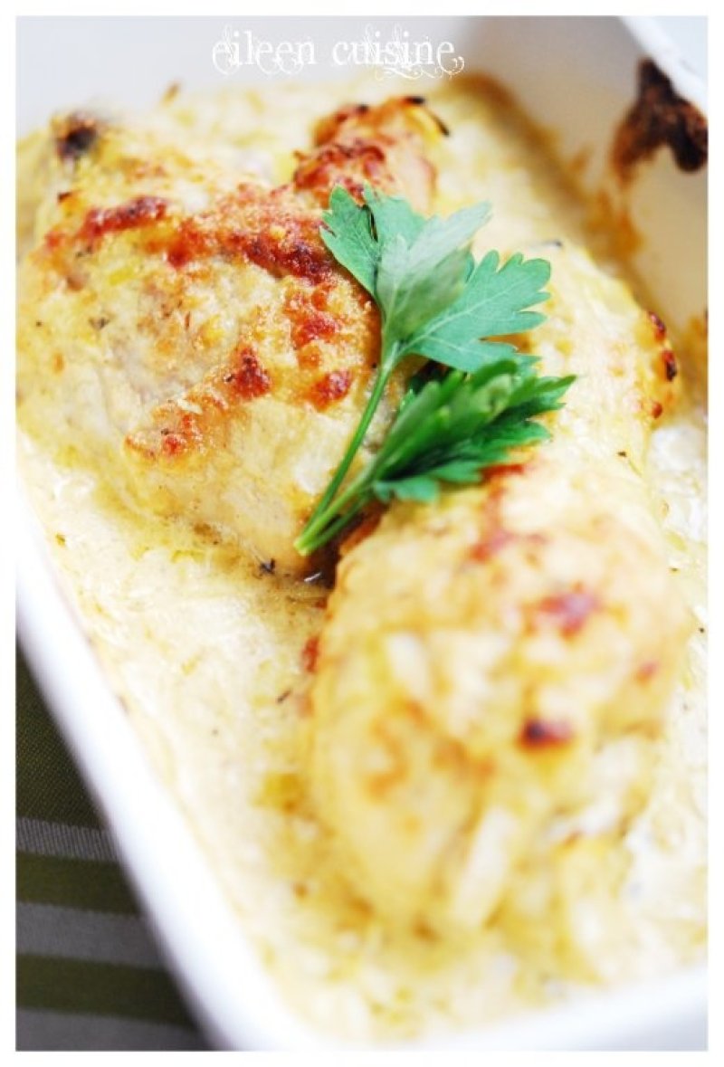 Presarati zeama si coaja de lamaie, pesmetul si parmezanul si bagati totul la cuptorul preincins la 180 grade. Lasati 15 minute pana se aureste deasupra.