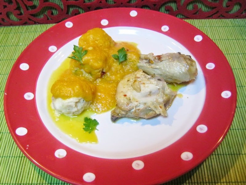 Servim friptura alaturi de cate 3-4 galuste bavareze si sosul vanatoresc.