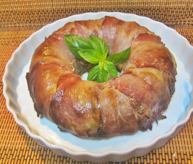 Intre timp , forma in care vom pune "purcelusul" o ungem cu putin unt si asezam feliutele de sunca crud -uscata.