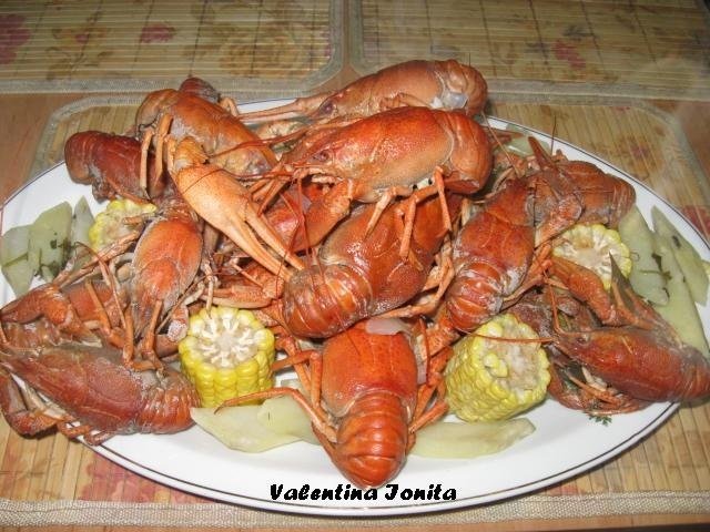 In momentul in care cartofii si porumbul sunt gata, se scot si se introduce racii. Racii trebuie sa fie acoperiti de lichid in momentul fierberii.Se fierb intre 5-10 minute si 15 -20 minute in functie de marimea racilor sau pana capata culoarea rosie .