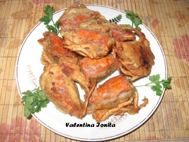 Fiecare rac in parte se va trece prin aluat,astfel incat sa fie complet acoperit de aluat si se va praji in ulei incins.