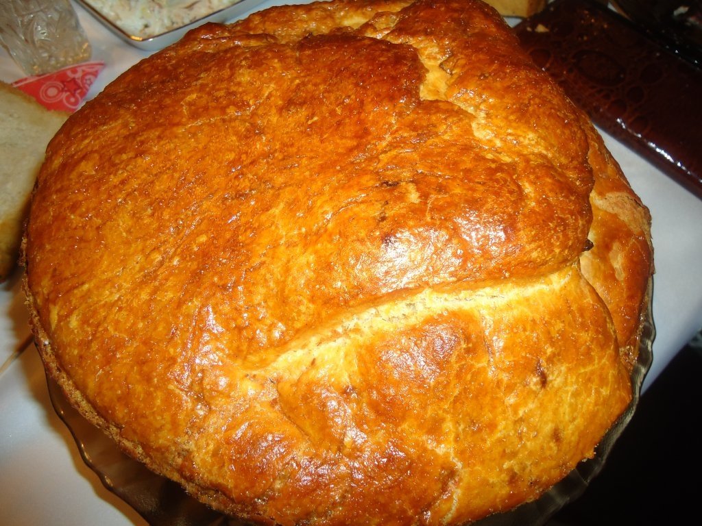 Se asaza faina intr-un lighean.In mijloc se adauga celelalte ingrediente si apa, cat sa se obtina o coca moale.Se framanta pana se desprinde aluatul de lighean(cam 15 minute).Se intinde o foaie dreptunghiulara.Peste foaie se presara uniform: ceapa,usturoiul tocate marunt si celelalte condimente, peste care se asaza rasolul.Se impacheteaza, se asaza intr-un vas uns cu unt, se lasa la cald sa creasca circa o jumatate de ora,se unge toata suprafata de aluat cu oul batut,dupa care se da la cuptoul incins in prealabil, pentru o ora.((Pana se rumeneste-depinde de cuptor)