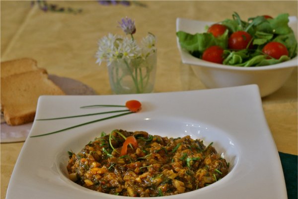 Tocana de gogoneleMancare munteneasca de vinete cu ciuperci si sos de rosii