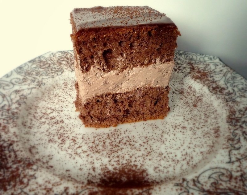 Facem 2 blaturi din cate 4 oua fiecare astfel: separam albusurile de galbenusuri, batem spma albusurile cu un strop de sare, adaugam zaharul si mixam pana devine o spuma tare. Adaugam galbenusurile una cate una si amestecam usor. Apoi cu o lingura de lemn incorporam faina amestecata cu cacaoa si praful de copt. Punem compozitia intr-o tava nu foarte mare (ca sa iasa mai inalta) tapetata cu hartie de copt. Dam la cuptorul preincalzit si lasam pana trece testul cu scobitoarea.