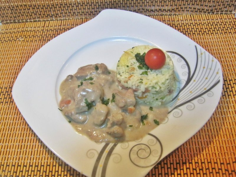 Servim orezul alaturi de 2-3 bucati de ficatei si o salata.