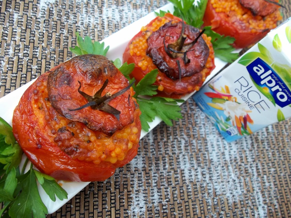 Cat timp cus-cusul se odihneste in apa clocotita,taiem partea superioara a rosiilor ca niste capace,dupa care scobim rosii cu ajutorul unei lingurite scotand miezul din interior.