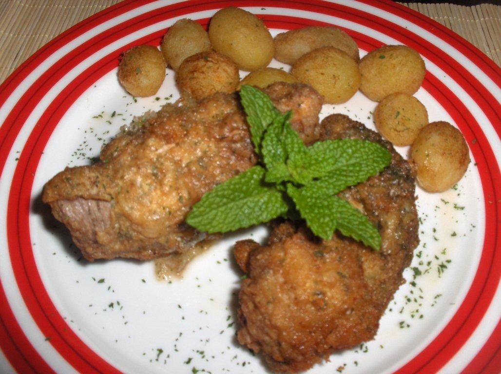 1) Carnea se bate si se condimenteazã. Se poate lãsa cca. 15 min. la marinat în suc de lãmâie ( de obicei o las de la o zi la alta).