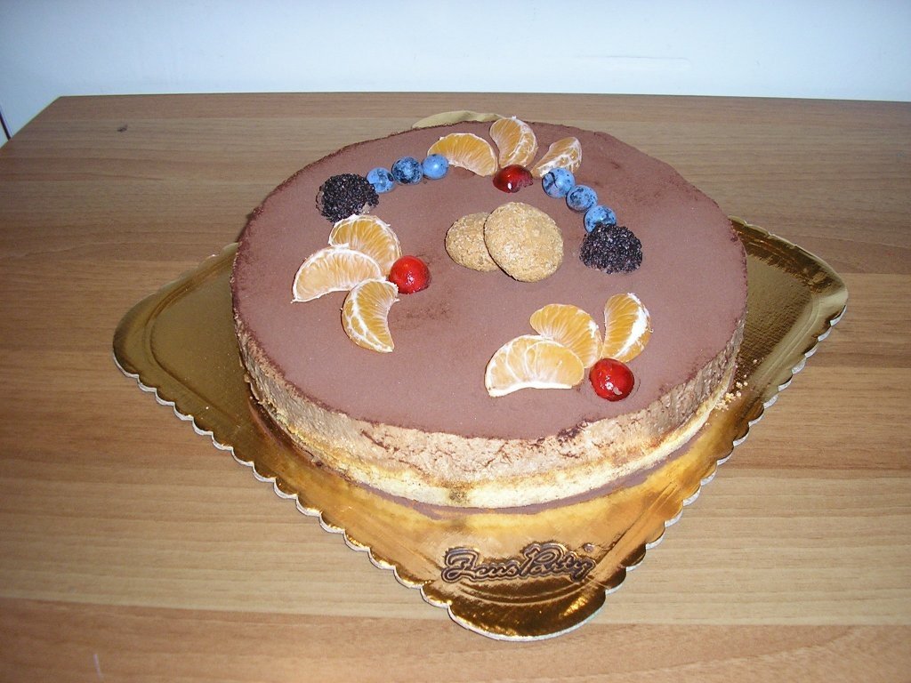 In tava cu inel punem blatul,stropim cu amestecul de cafea si amaretto,si rasturnam deasupta toata crema.Lasam la frigider minim 5 ore.Decoram cu cacao cernuta din abundenta si ornam cu ce gasim(eu nu prea am gasit:)