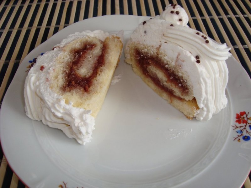 Se deruleaza blatul racit peste care intinzi gemul de capsuni si apoi rulezi din nou.