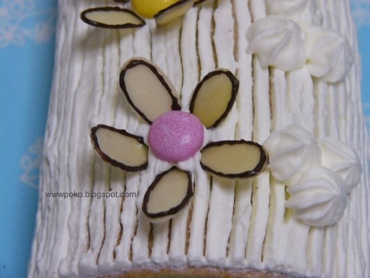 Pui cate-o bomboana pe rulada, si imprejur fulgi de migdale.Aceste floricele din fulgi de migdale puteti decora torturi,rulade,creme .......