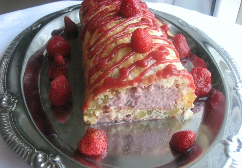 Capsunele le punem pe foc intr-o cratita cu 4 linguri de zahar si ii lasam sa fiarba. Cand se sparg capsunele le oprim din fiert si le facem pasta cu blenderul. Adaugam in pasta gelatina inmuiata conform instructiunilor de pe plic. O lasam deoparte pana se raceste putin.