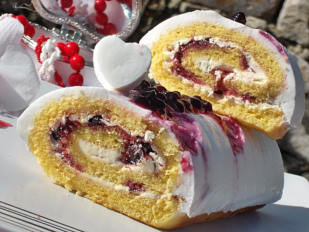 2.Se topeste ciocolata alba la bain marin impreuna cu cele 3 linguri de smantana apoi se intinde uniform pe blatul rece .Deasupra setoarna dulceata de cirese amare si apoi se ruleaza strans,ajutandu-ne de hartia de copt.