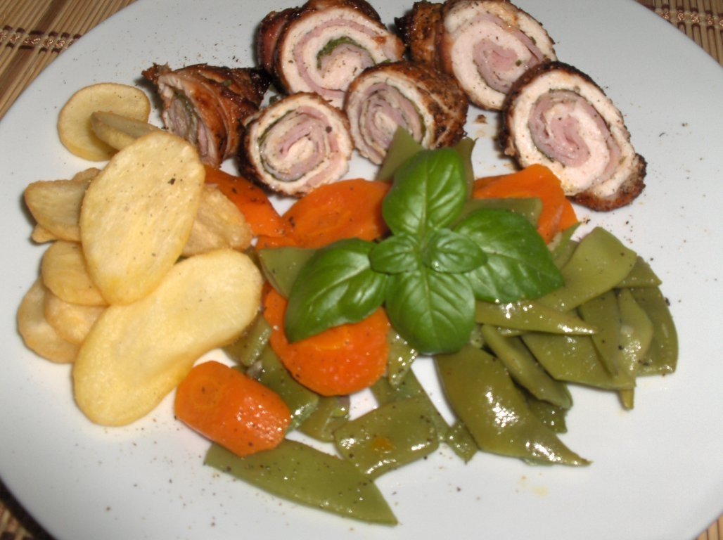 De data asta am incercat sã umplu aceste snitele cu bacon, merg si simple...