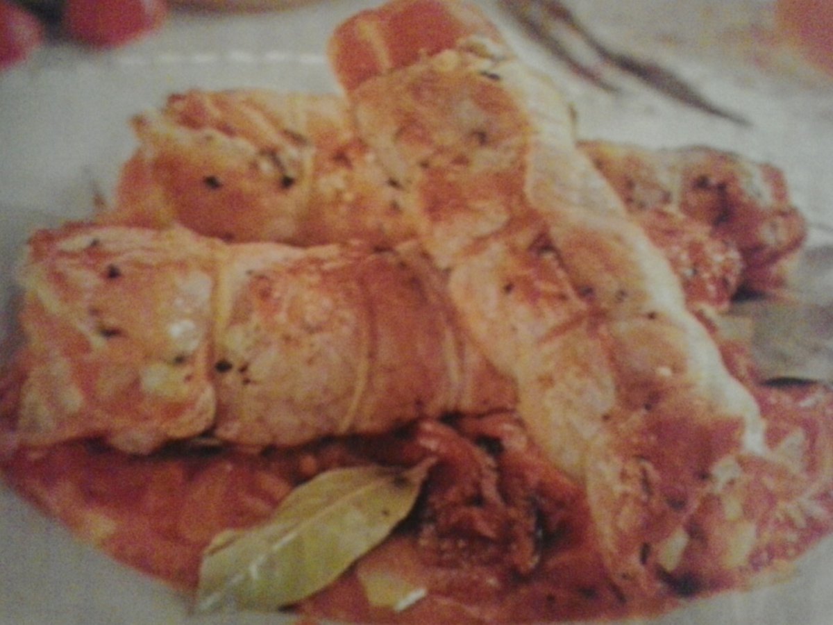 Se curata ceapa si se taie pestisori,se caleste timp de 5 minute impreuna cu uleiul de masline,se adauga rulourile si se rumenesc pe ambele parti.