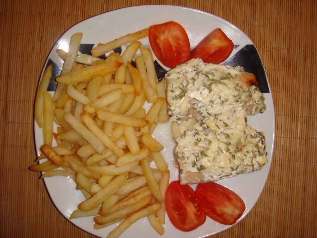 Se spală şi se feliază pieptul de pui. Feliile se bat ca pentru snitele şi se condimentează cu sare, piper şi condimente pentru pui. Ciupercile se curăţă şi se taie felii.
