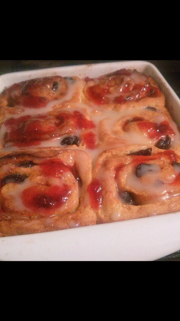 Glazura: Amestecati toate ingredientele pana obtineti o pasta moale care curge si o puneti peste rulourile caldute. Optional, puteti pune si gem peste rulori,eu am pus de capsiuni.Pofta buna!