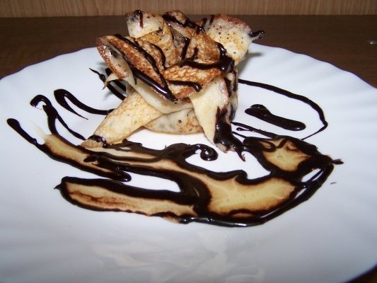 Intr-o tigaie unsa cu putin ulei si incinsa bine, cu un polonic, se toarna compozitia care se intinde pe suprafata tigaii prin miscari rotative.