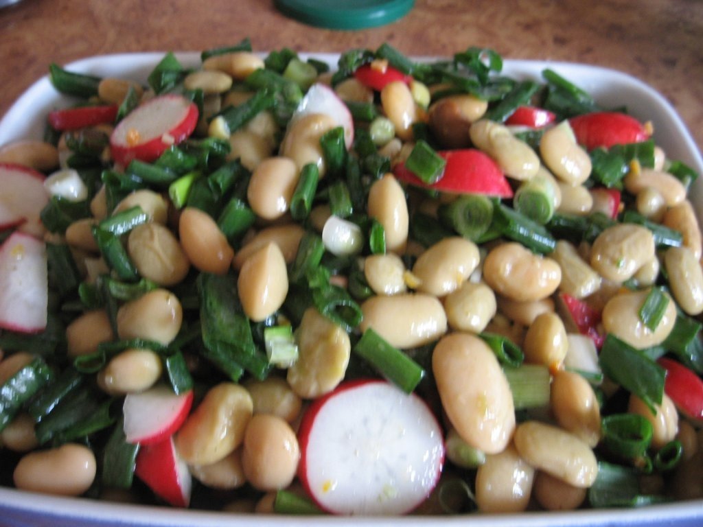 Cind a fiert, am scurs-o si am lasat-o la racit. Peste ea am taiat ceapa verde, ridichi, am pus ulei de masline si otet, inca un pic de sare si am lasat-o sa-si ia gust o jumatate de ora. Am mincat-o cu piine prajita si este foarte, foarte buna salata!