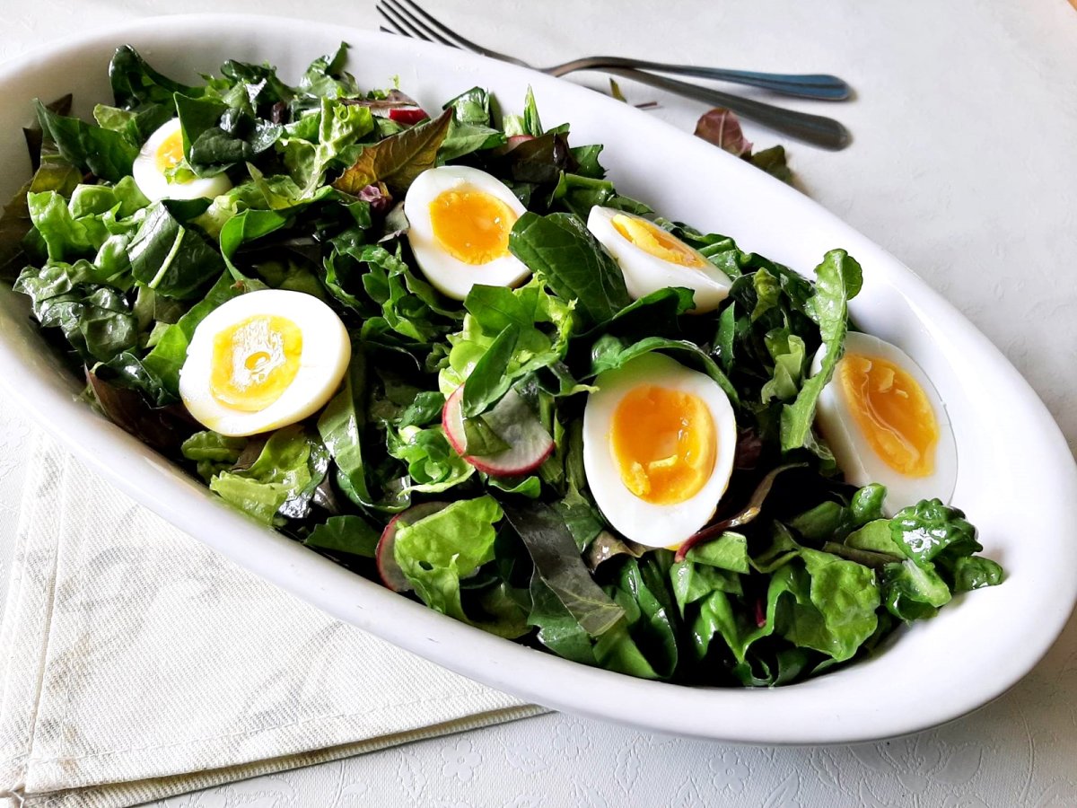 Reteta de salata de primavara cu oua este prefeata mea. O fac toata primavara cu diverse verdeturi din gradina si oua de la gainusele mele pitice. Este o salata simpla, satioasa, plina de vitamine si foarte gustoasa.