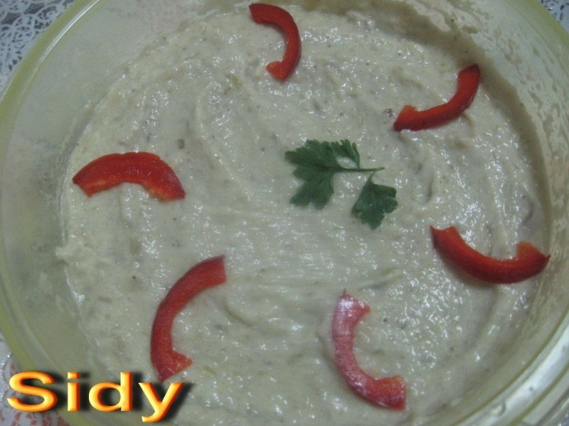 Din galbenus, usturoi presat, mustar si smantana se face o maioneza dietetica la care se adauga incet incet uleiul de masline. Cand este gata adaugam vinetele si dovleceii apoi iaurtul.Potrivim de sare si piper si invartim bine sa se amestece toate.
