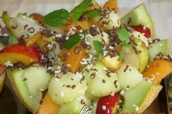 Salata de pepene verde cu haloumiCuratam perele de coaja si cu ajutorul unei lingurite, scobim cotorul cu grija, pentru a le mentine intregi.