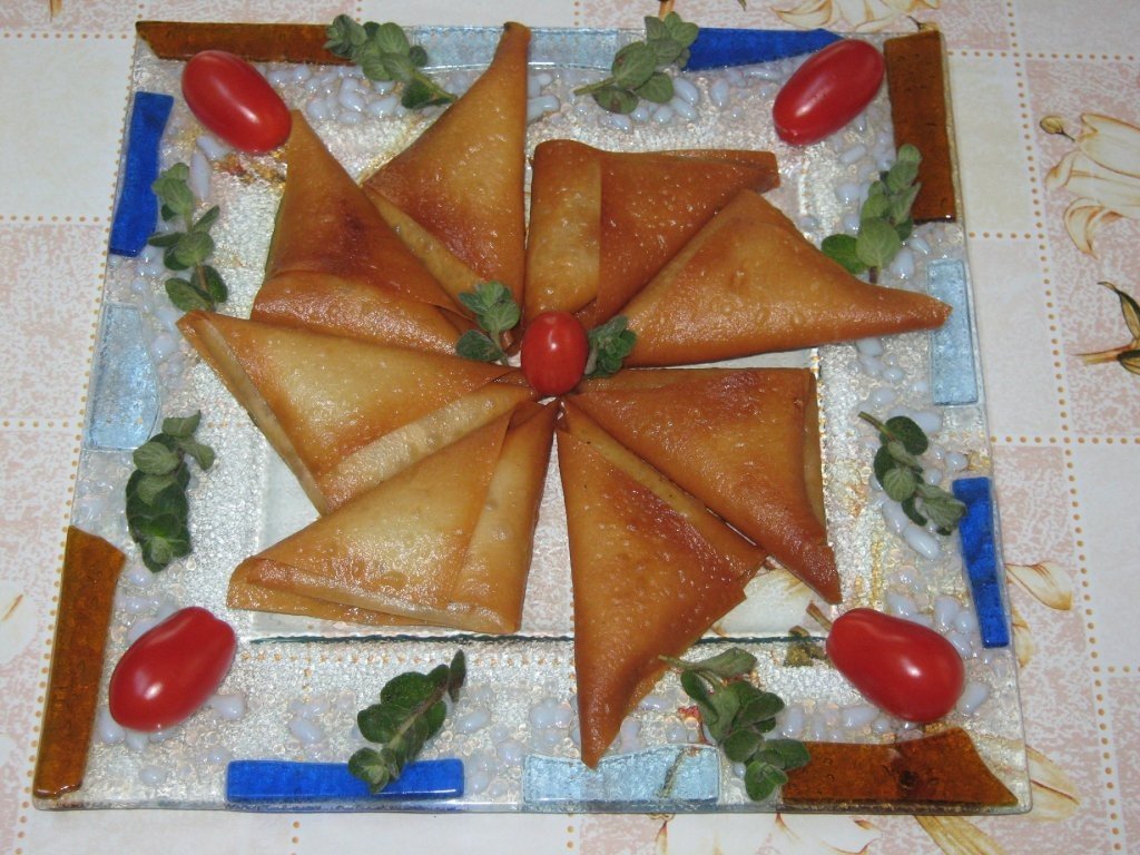 Se aseaza rondeaua de aluat pe forma de sambusek.