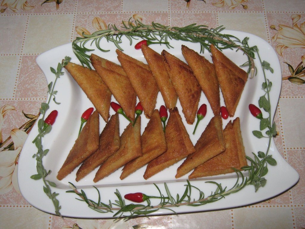 Se face un aluat din 1 ½ cãni de fãinã, ½ canã margarinã, 1 linguriţã sare si ½ canã apã rece.