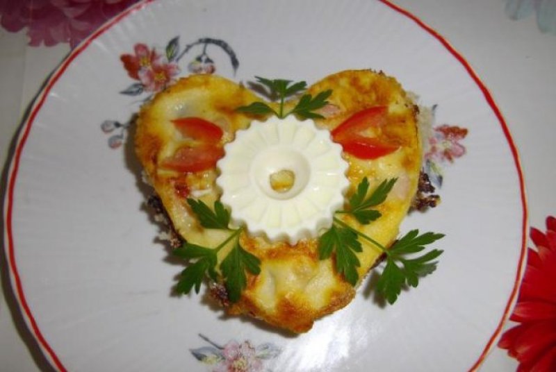 Incinzi uleiul, asezi o forma pentru ou, torni putina compozitie si o coci pe ambele parti (ca pe o clatita).