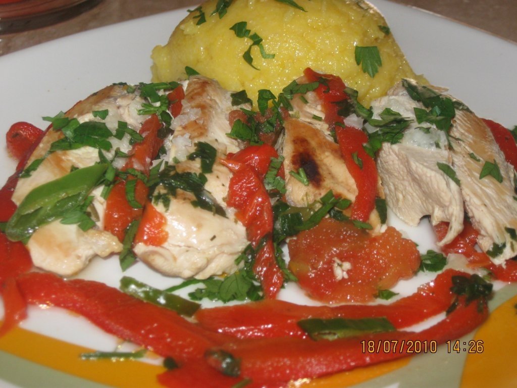 Carnea se condimenteaza cu sare si piper si se pune pe gratar.Cand este gata fripta se taie cubulete.