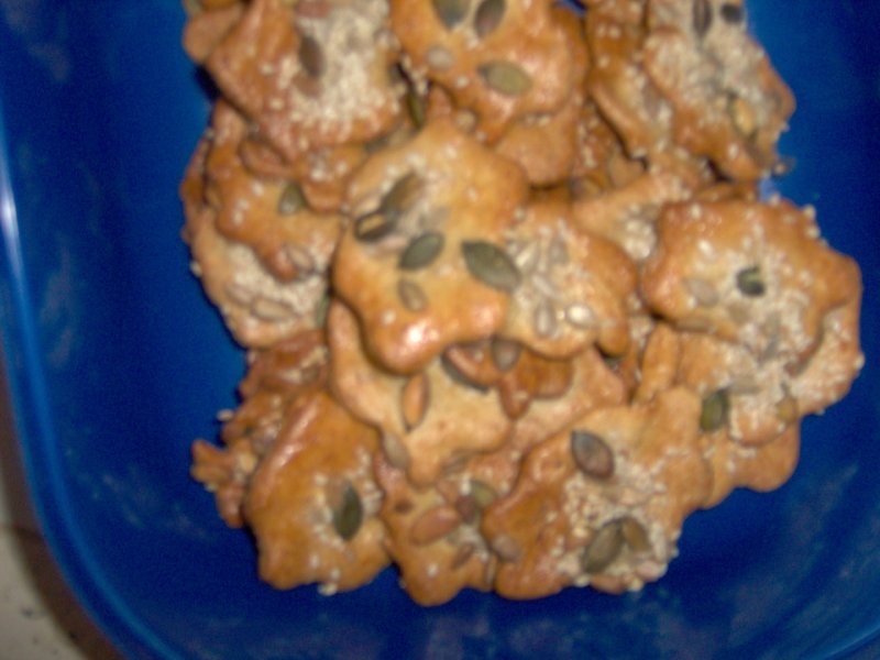Ungem aluatul cu ou sau albus si presaram seminte din abudenta si trecem cu sucitorul peste aluat ca semintele sa intre in aluat.