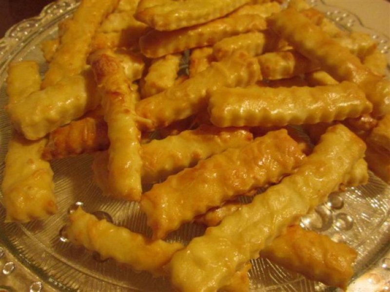 Intindem aluatul pe o planseta,nu foarte subtire,dar nici foarte gros,taiem betisoare cat vrem de lungi si late,le ungem cu ou batut si presaram cascaval ras deasupra,le asezam in tava in care am pus hartie de copt si introducem in cuptorul incins pana se rumenesc usor.