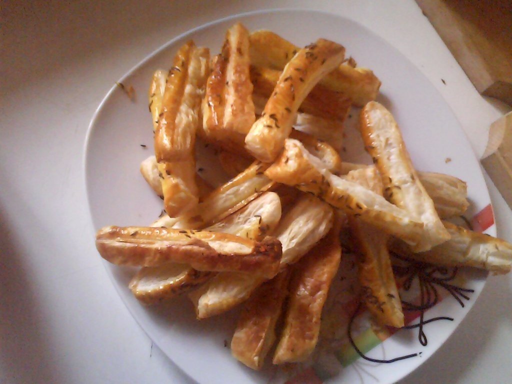 Am uns tava cu niște margarină/unt ca să nu se prindă și să se prăjească prea tare.. deșii sunt bune și cele crocante. Între timp am încălzit cuptorul la 180-200grade Celsius. Am amestecat gălbenușul cu sare după care am uns sărățelele cu o pensulă, apoi am presărat chimen. Am dat tava la cuptorul încălzit și le-am lăsat cam 10-15minute, când au căpătat culoarea pe care am vrut-o le-am scos și le-am așezat într-un bol, nu au apucat să se răcească că s-au și păpat.. așa că tind să cred că au fost bune mai ales că s-au mai cerut..