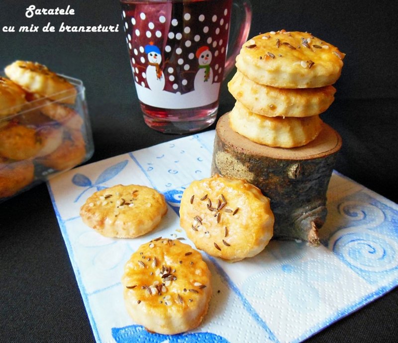 Cu o forma de fursecuri decupam saratelele, le asezam intr-o tava tapetata cu hartie de copt. La fel procedam si cu restul aluatului.