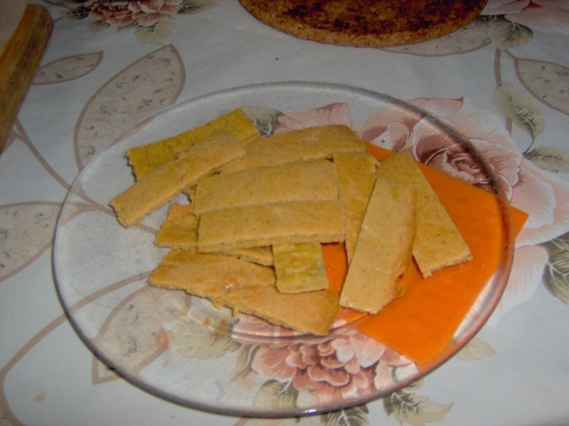 Cand e copt scoatem cu hartie pe o plansa, lasam putin sa se raceasca si taiem fasii dupa preferinte.