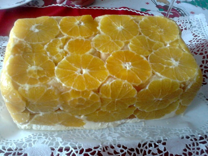 O cratiţă de 3 litri se tapetează cu celofan umezit în apă rece. Pe fundul cratiţei se pun rondelele de portocale, cât mai compact, apoi un strat de cremă cu frişcă, peste care se așează pişcoturile, apoi cremă, apoi pişcoturi, cremă, pişcoturi. Se pune capacul cratiţei şi se dă la rece până a doua zi când se răstoarnă pe platou şi se serveşte.