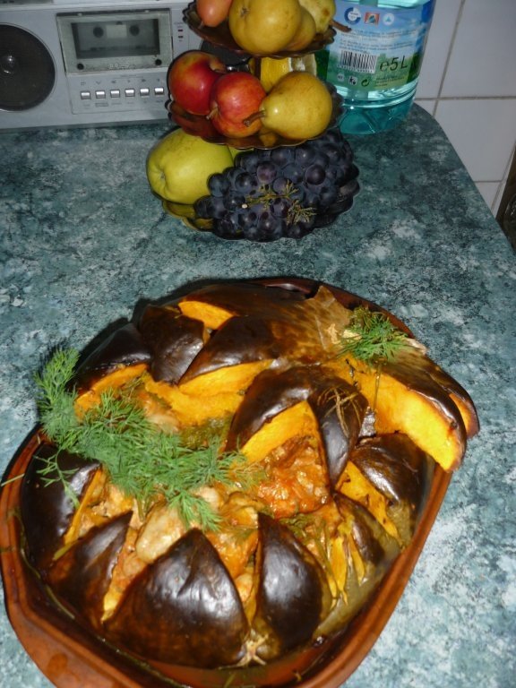 Se aseaza bostanul intr-o forma de lut dupa care se da la cuptor timp de 2 ore.