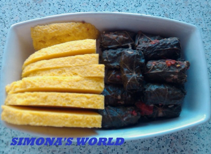 Se toaca ceapa marunt, si se pune peste carnea tocata. Se amesteca bine, apoi se pune orezul, cimbrul, condimentul ptr sarmale, sare, piper, delikat. Se aleg frunzele de vita de vie, apoi se ia din compozitie si se formeaza sarmalutele (mie mi`au iesit 50 de sarmalute). Se pun intr-un vas, adaugandu-se crengutele de marar, apoi se pun rosiile si apa cat sa le acopere. Se da la cuptor pentru 2 ore la 150 grade. Noi le`am servit cu mamaliga. Pofta buna!