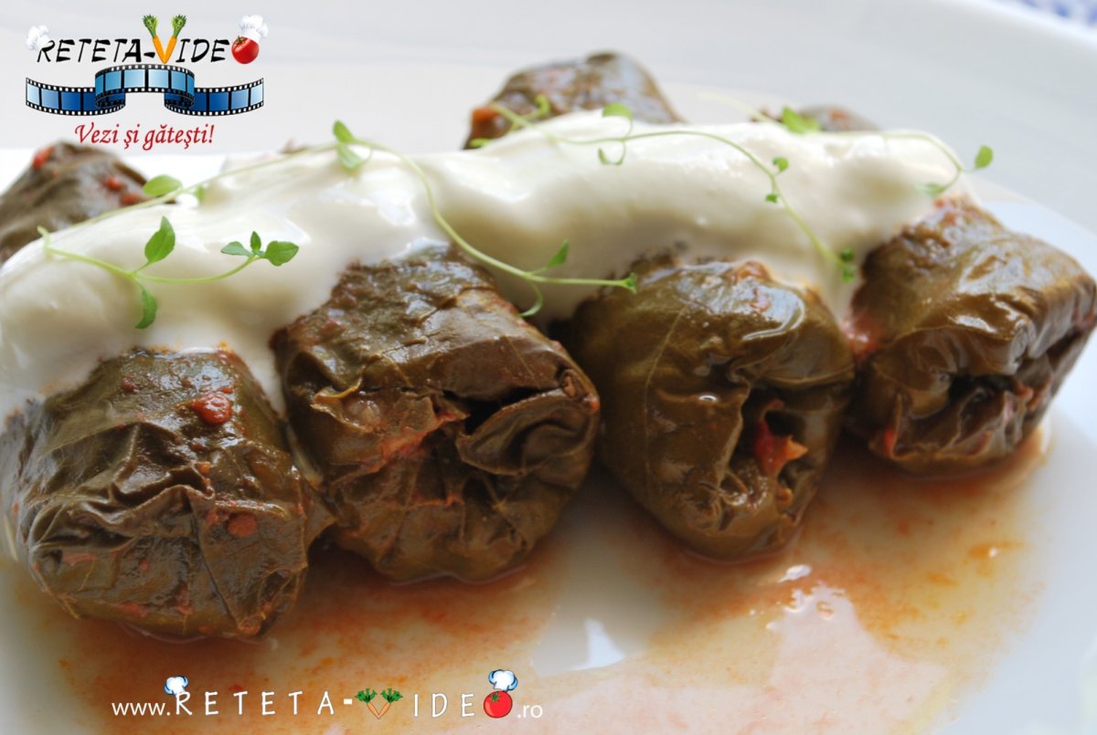 Punem o foaie de vita pe o planseta, cu fata lucioasa in jos. Punem aproximativ o lingurita cu umplutura in centrul foii de vita, rulam putin frunza, pliem partile laterale si rulam pana la capat. Nu strangem foarte tare! In cazul in care foaia se rupe, este mai bine sa folosim alta! Daca frunzele de vita sunt prea mici, punem 2 foi usor suprapuse, dar in acest caz vom avea nevoie de mai multe. Strangem usor in mama sarmalele, pentru a se aseza compozitia.