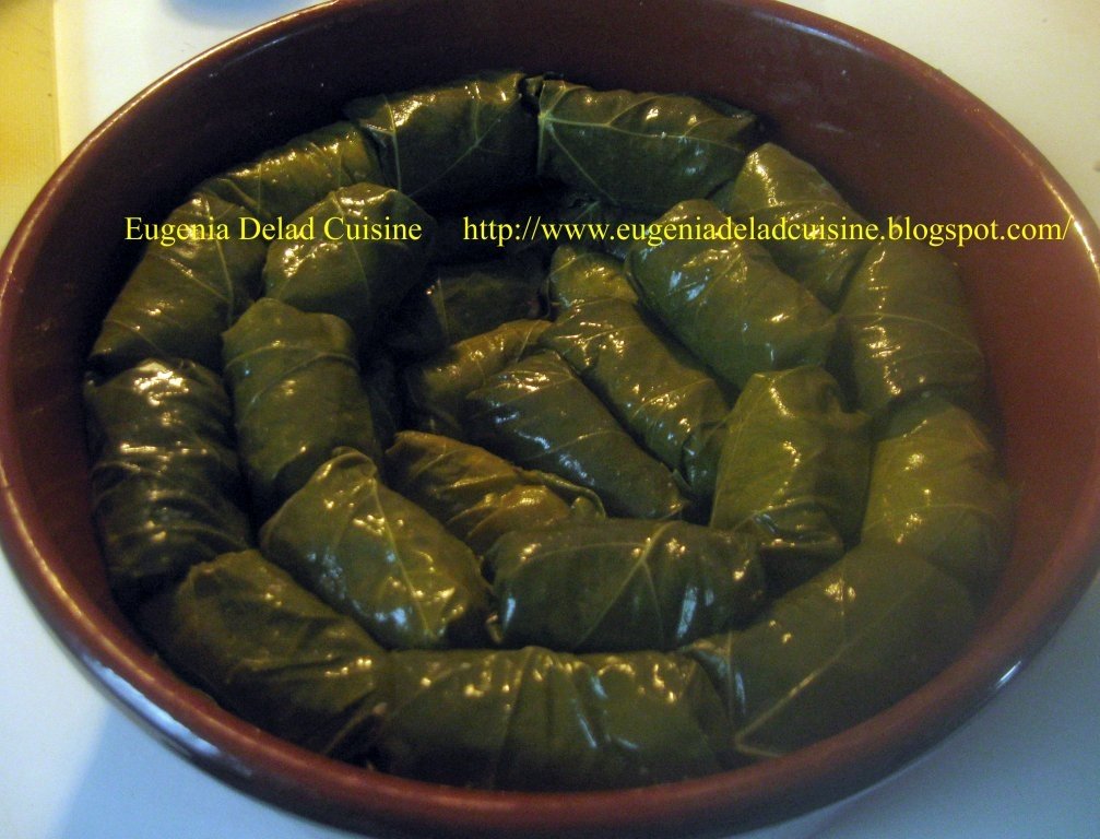 Se ia o frunza de vita, se inlatura partea fibroasa si se pune in centrul ei o bucatica din amestecul de carne tocata si quinoa.