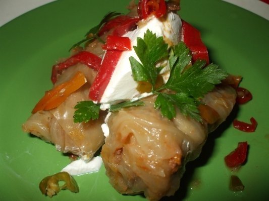 Serviti-le cu smantana, daca doriti si garnisiti-le cu fasiile de ardei rosu, verdeata si feliute de ardei iute (dupa preferinta).