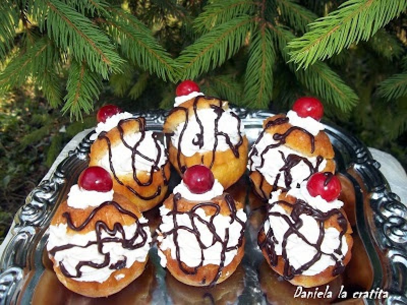 Pentru asamblarea savarinelor,vom taia capacul si le vom trece prin sirop.La final se decoreaza cu frisca(frisca lichida rece mixata) si ciocolata/fructe.