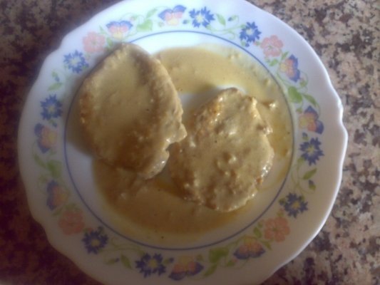 Smantana se amesteca cu 2-3 linguri apa(supa),se toarna peste carne,se mai amesteca impreuna cam 5 minute,dupa care se sareaza,pipereaza si se pot servii alaturi de o garnitura de cartofi nature; pofta buna!