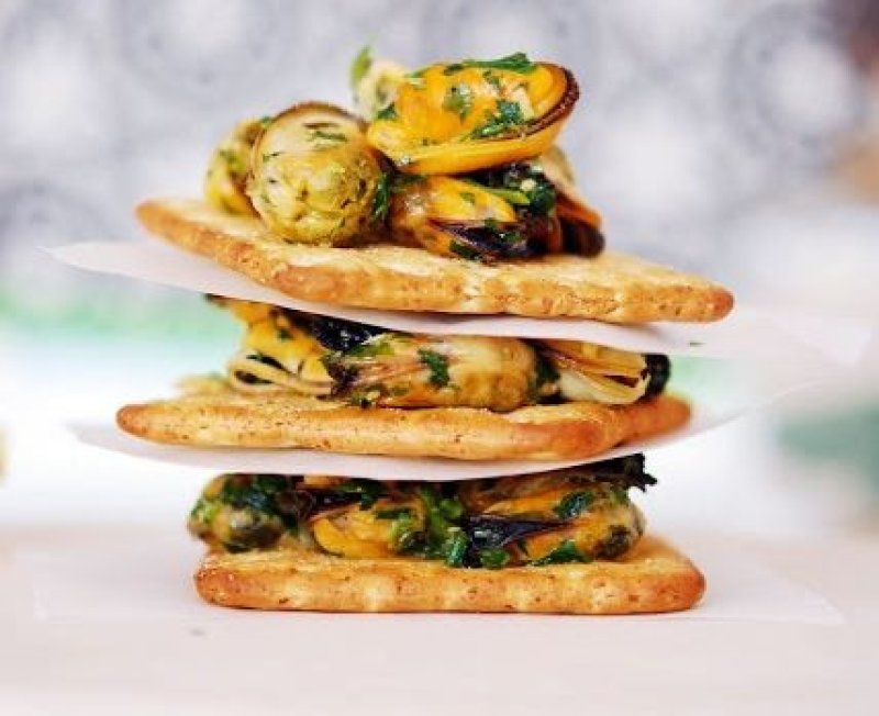 Aranjati painea prajita in mijlocul farfuriei, deasupra puneti scoicile cu sosul lor si serviti imediat.