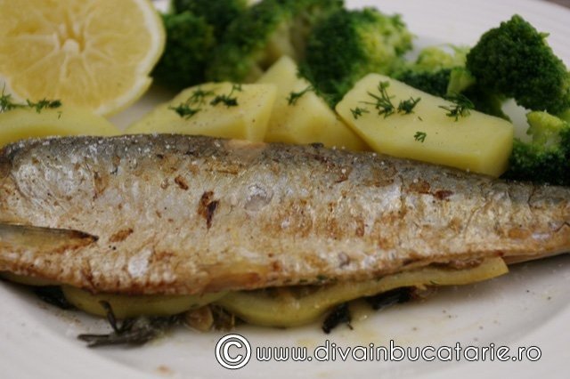 Servim cu garnitura de cartofi fierti si brocoli. Scrumbia este un peste foarte gras, este posibil sa mai aveti nevoie de lamaie cand serviti.