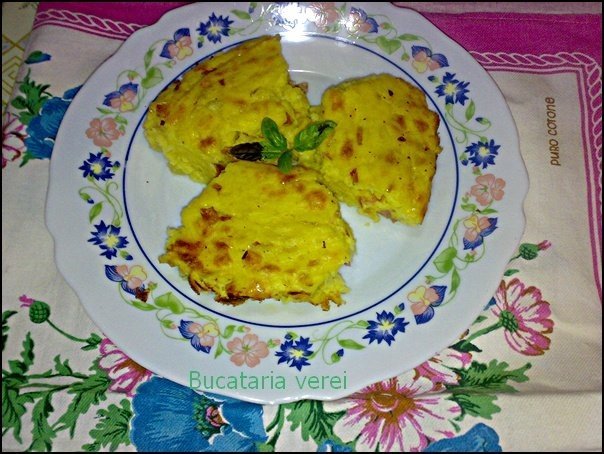 Turnam compozitia intr-o tava de tort unsa si tapetata introducem in cuptorul cald 200°C timp de 45 minute;