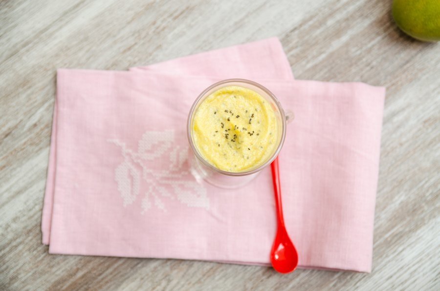 Se curata mango de coaja, se taie cubulete si se pune in blender cu laptele de cocos si se amesteca pentru 1 minut. Se adauga fulgii de migdale si se mai amesteca cu blenderul inca un minut. La final aruncati in compozitie si semintele chia, amestecati inca putin si gata smoothie. Turnati intr-un pahar, presarati deasupra cu fulgi de cocos si consumati cu placere un pahar de sanatate exotica.