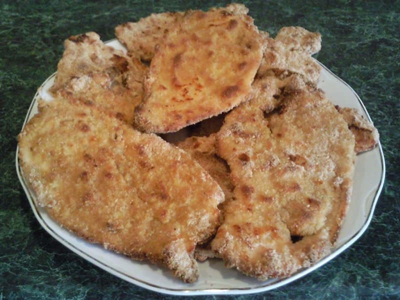 Feliile de pui se bat cu ciocanul de carne , se condimenteaza apoi se ung cu ulei . Se lasa 10 minute pentru a se patrunde apoi se dau prin faina alba , ou batut si pesmet dupa care se pun intr-o tava tapetata cu hartie de copt si se dau la cuptor circa 20 minute , 10 minute pe fiecare parte .