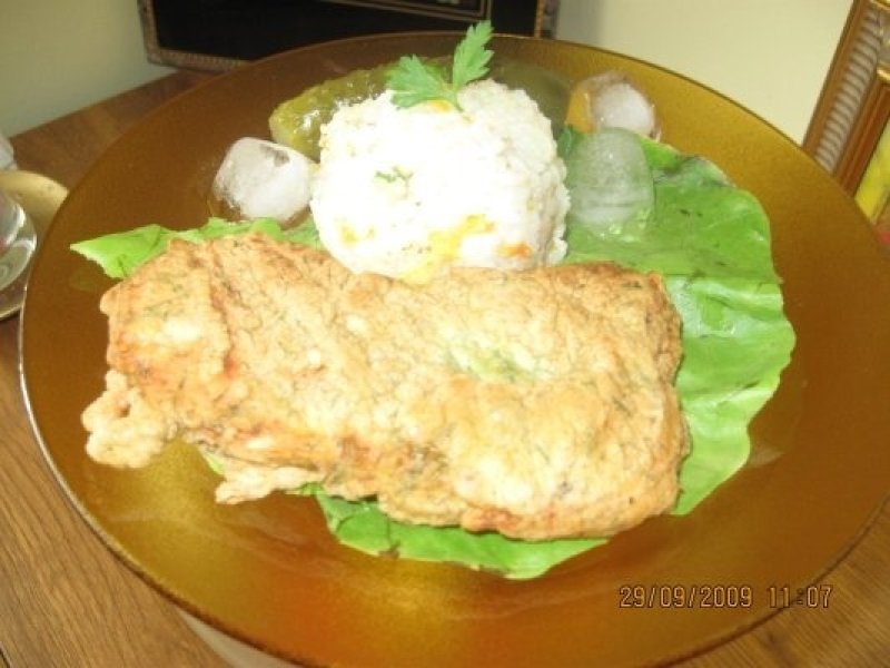 Fiecare bucata de carne se da prin amestecul de mai sus si se prajeste intr-o tigaie in care am incins in prealabil uleiul. Se prajesc pe ambele parti. Se scot pe o hartie absorbanta. Se servesc alaturi de o garnitura.